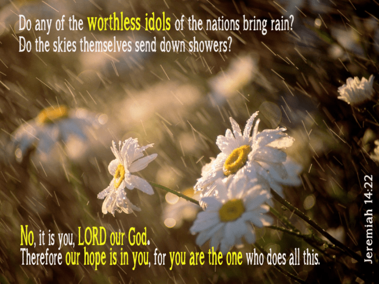 “You are the one, O LORD our God! Only you can do such things [like send us rain]. So we will wait for You to help us.” — Jeremiah 14:22