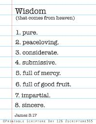 James writes in 3:17: ” But the wisdom that is from above is first pure, then peaceable, gentle, willing to yield, full of mercy and good fruits, without partiality and without hypocrisy.”
